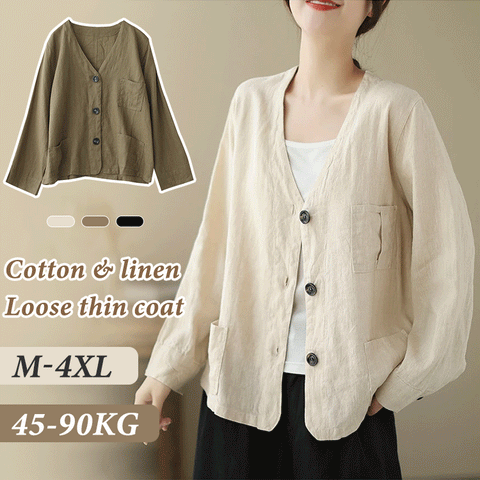Lässiges Hemd mit dünnem Mantel aus Baumwolle und Leinen
